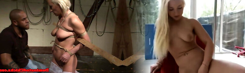Sexy Blonde Gets Bondaged And Fucked By Redhead MILF On Wooden Platform