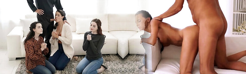 Busty Milf Penny Barber and Her Stepson Share Petite Babe Haley Spades' Blowjob