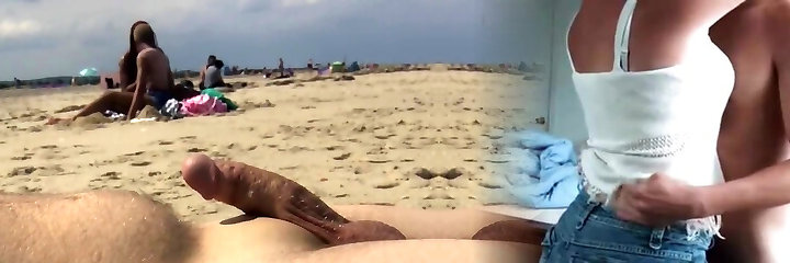 Horny Amateur Gives Sexy Handjob with Cumshot for CFNM Pleasure