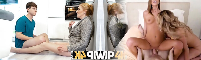 Mama's Big Tits Get Fucked by Two Young Lovers in the Kitchen