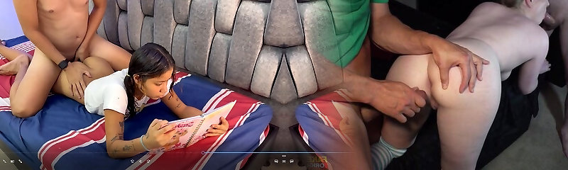 Horny Stepsister Gives Blowjob to Her Brother while Mom Looks On