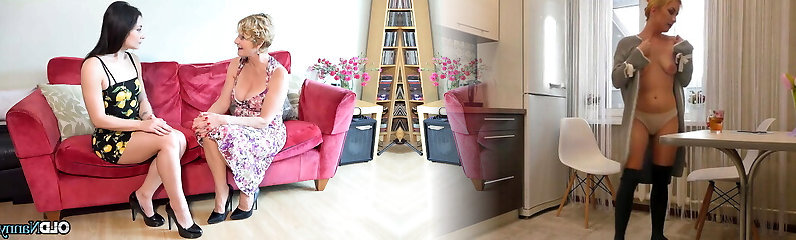 Horny Oldnanny Lesbians Fucking Each Other's Tight Pussies on a Comfy Couch