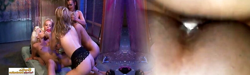 Lesbian Slut Gang Bang: Busty Blondes Fuck Each Other's Tight Pussies with Big Dildos!