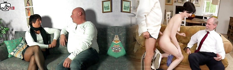 Horny Blonde Babe Gets Her Stockings Pulled Off During a Steamy French Granny Threesome Blowjob!