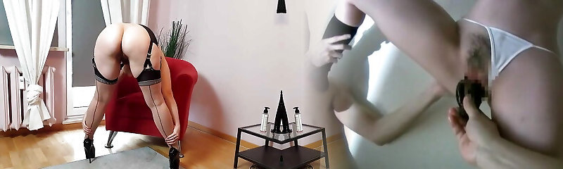 Horny Blonde Babe Gets Fucked by Hand in Stockings & Heels