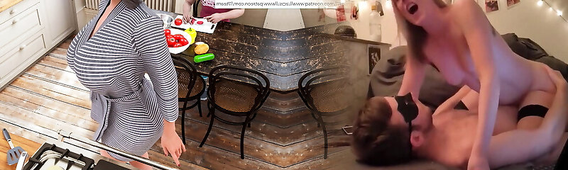 Busty MILF Shares Son-in-Law's Dick with Daughter in Living Room Gangbang