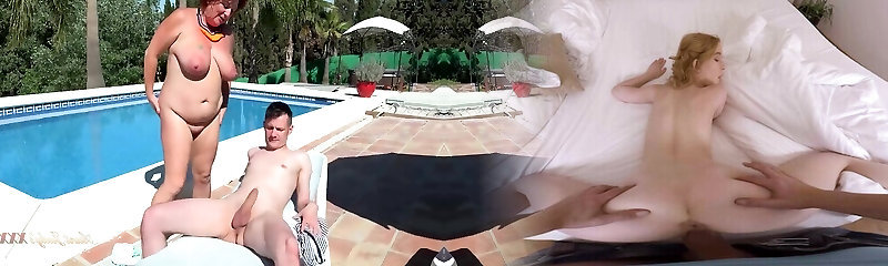 Granny Fucks by the Pool: Mature Beauty Has Wild Sex with Young Lover Under the Sun!