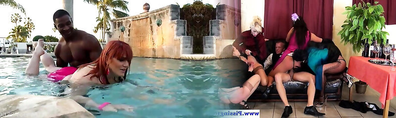 Oiled Up MILFs Share Their Cocks With Mommy's Boy at the Pool Party!