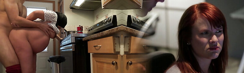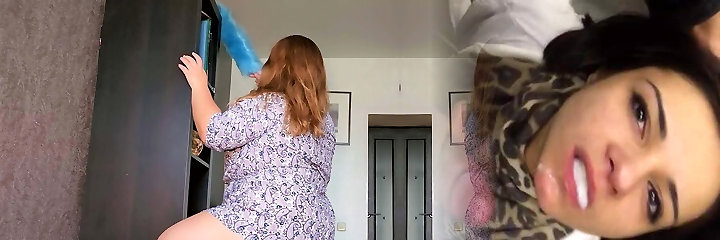 Busty MILF Gets Fucked Hard By Her Stepson As She Cleans The Bookshelf With A Feather Duster!