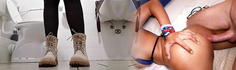 Public Restroom Fuck Fest: Busty Beauties Blow Their Lovers' Cocks!