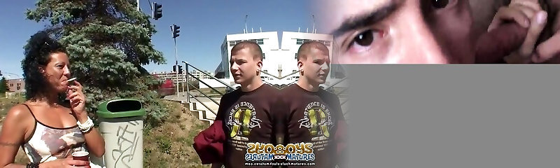 Horny Brunette Milf Gets Cummed On By Straight Guy Outdoors During Smoking Session!