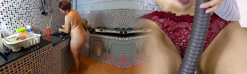 Horny Cleaner - Hot Naked Chick Washes Dishes
