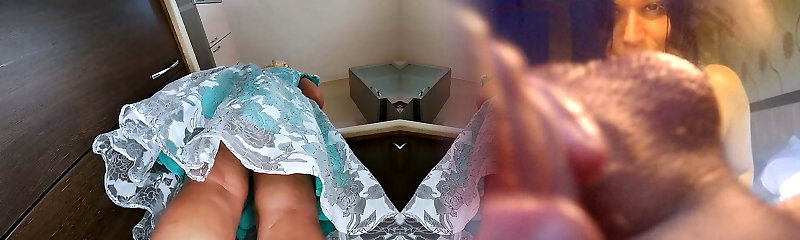 Cumming Inside Step Mom's Blue Dress: Close-Up Upskirt Fun