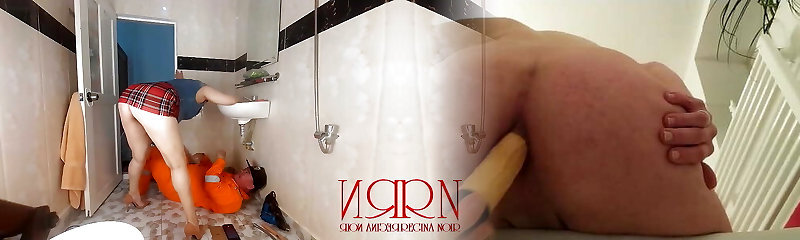 Big Tit Bitch Gets Her Pussy Wet While Mopping up the Bathroom - Sizzling Upskirt Porn Scene!