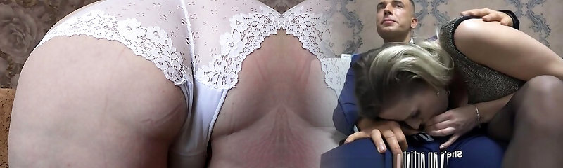 Russian Beauty Lukerya Fucks on the Kitchen Counter in Black and White Lingerie
