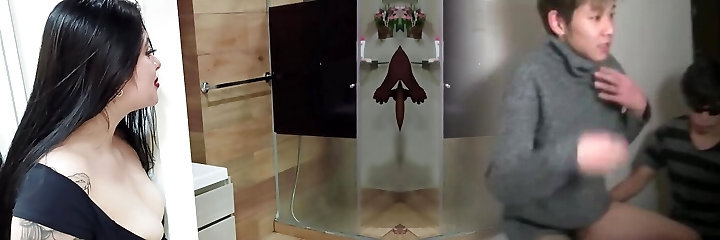 Sexy Japanese Mama Sucks on Her Horny Son's Dick in the Tiled Bathroom!
