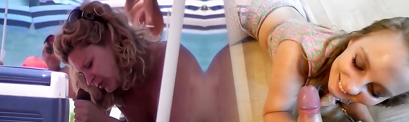 Cumming Together: Big Titted Grannies and their Sex Partners Blow Each Other's Loads on the Beach!