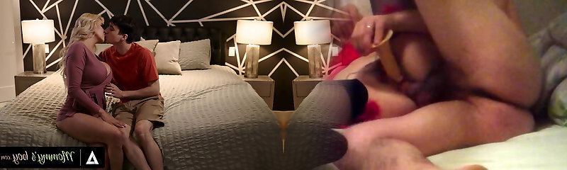 Horny Mommy's Boy Gets His Cock Sucked by Busty Step-MILF