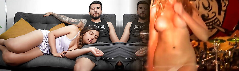 Hot Lesbian Sex Scene: Stepson Caught Mom and Girlfriend Fucking