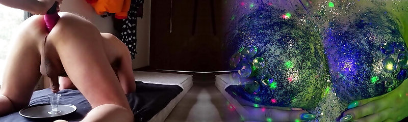 Fat Granny Cumming Hard on Her Dildo while Sucking Skinny Balls
