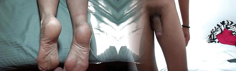 Horny Older Woman Sucks Cock with Her Feet While Young Man Blows His Load!