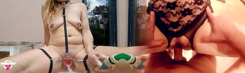 Sexy Mature Milf Gets Cum-filled Blowjob From Pierced Dildo While Wearing Black Stockings and Chains