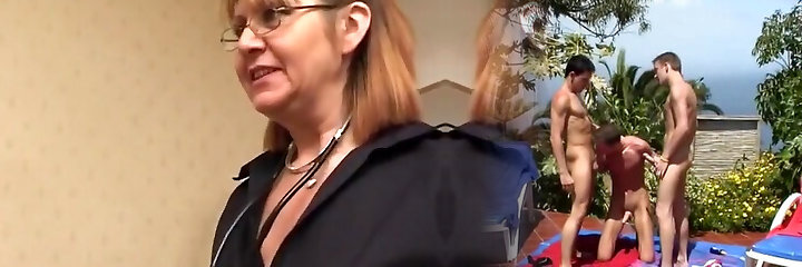 Young Man's Ass Is Fucked By Horny Granny's Strap-on As She Sucks His Cum!