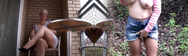 Horny Mature Busty Blonde Fucks Her Pussy on Camera in the Garden